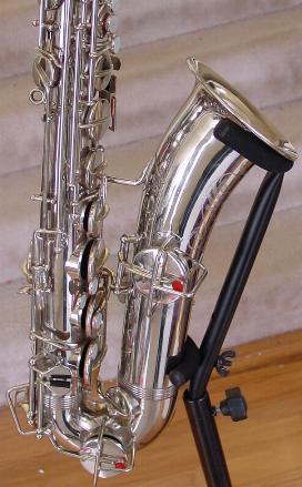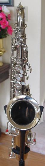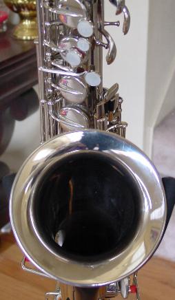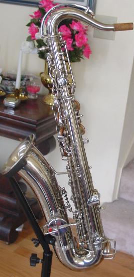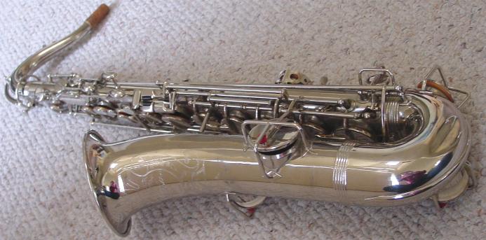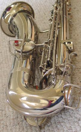 This sax comes with its original deluxe hard case with plush lining which is in nice original condition just like the sax! Another note, this anti tarnish treatment on the entire horn I perform is extra work but should keep this horn cleaner and more tarnish free on all the handling and playing surfaces for some years to come and I am the only one in the world I know of that does this. This anti tarnish treatment is fully renewable at a later time should it need to be freshened up after heavier than normal playing. It should also help protect the key and body surfaces from wear and general loss of finish that occurs from rubbing and handling during play. It is applied directly after polishing and so that newly cleaned gorgeous bright sparkling shiny luster is preserved for a much greater time than it would otherwise. Even though this is a chrome plated sax and generally chrome resists tarnish and scratching better than other finishes, chrome can and does tarnish with a white cloudy affect versus the black tarnish affect of silver.