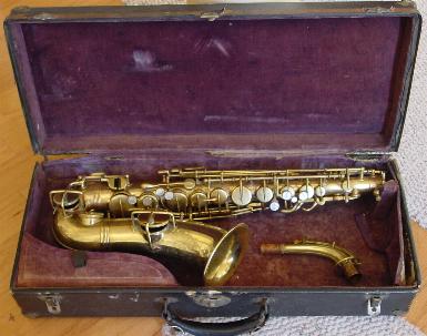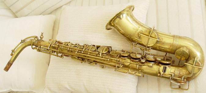 This sax was torn down, cleaned out, body and keys polished, body and keys separately treated