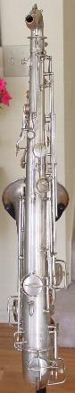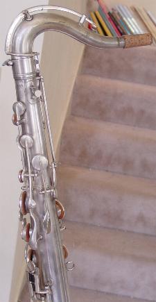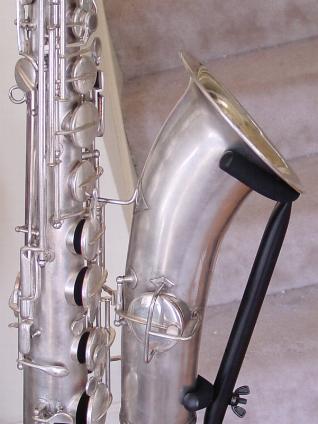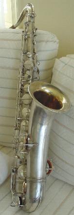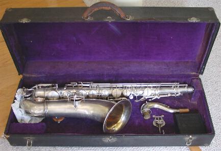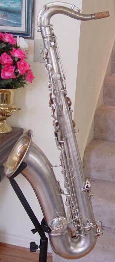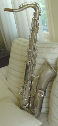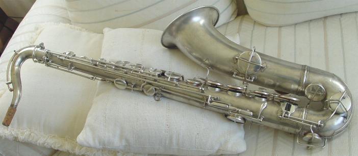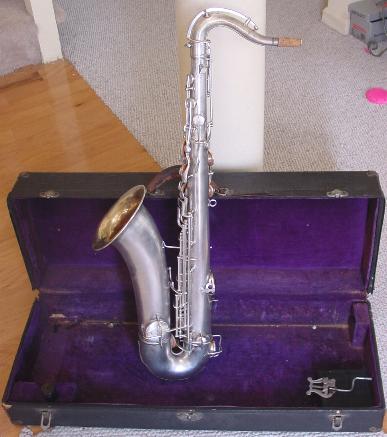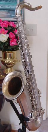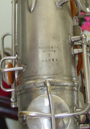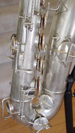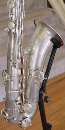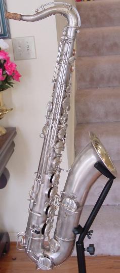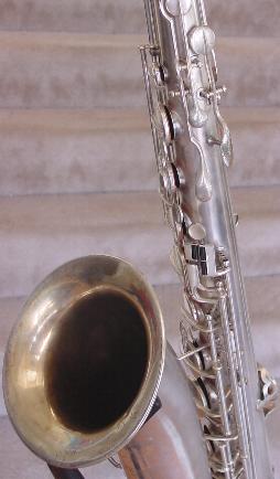This horn was torn down, cleaned out, body and keys polished, body and keys separately treated with a powerful anti tarnish substance (better than a clear lacquer as it is transparent and non inhibiting sound-wise and doesn't peel or flake off with age), then rebuilt replacing all its original pads with Mark VI resonator style pads. This horn is well along through break in, but may need more regular playing by its new owner to complete that.